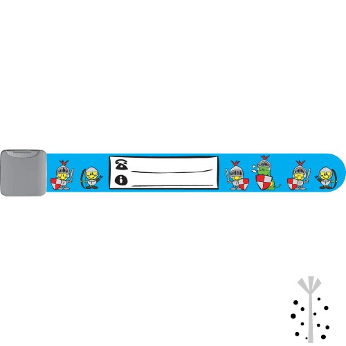 An ID wristband for kids suitable for all outings Blue Knights Infoband provides on the go safety for both children and parents. This band is a soft plastic wristband for children where parents can write their contact number name allergies etc.