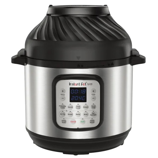 The Instant Pot Duo Crisp & Airfryer is the best of both worlds. With 11-in-1 functionality it does everything a regular Instant Pot does but swap out the pressure cooker lid for the innovative airfryer lid and you’ve got a whole new set of cooking techniques available — all fast easy and at the touch of a button. The pressure cooker lid offers 6 wet cooking functions: use it to quickly pressure cook sauté steam slow cook sous vide and warm. The airfryer lid offers 5 crisp cooking functions: use it to quickly airfry roast bake broil and dehydrate.