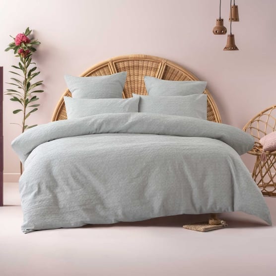 Dress your bedroom in beautiful effortless style with the Kingston duvet cover set. This stunning design features an ornate tile pattern woven in double cotton jacquard with cotton percale reverse for tactile appeal. It is washing machine friendly for effortless cleaning and features a press-stud closure to make changing it simple! Double cotton jacquard with a cotton percale reverse duvet cover set with 2 standard pillowcases.