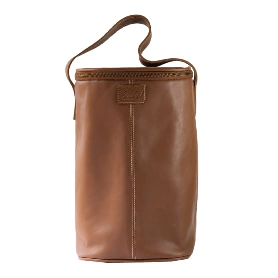 Arrive in style at your next social event or restaurant dinner carrying up to two tall wine bottles in this luxurious tan leather cooler. With an insulated lining and protective bottle divider your wine will stay cool and safe at the same time.