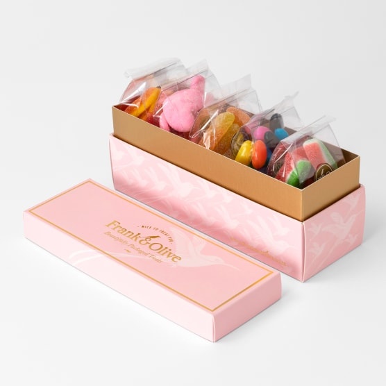 This is a treat box full of fun and flavour for everyone who can appreciate the satisfaction a good box of candy can deliver! Five individual packets each filled with different sweets means that there is always a new flavour waiting to be discovered and enjoyed. Sweet Hearts Mildly Sour Earthworms Peach Hearts Watermelon Slices Jelly Beans and Fruit Slices are just some of the treats inside that'll hit the sweet spot.