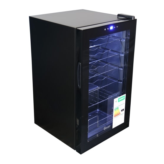 This stylish and practical Wine Cooler uses compressor cooling technology to keep up to 24 bottles of wine at the perfect temperature. It features a sensitive touch temperature control button a tempered glass door and a handy interior light. The Swan appliance range is designed for life.