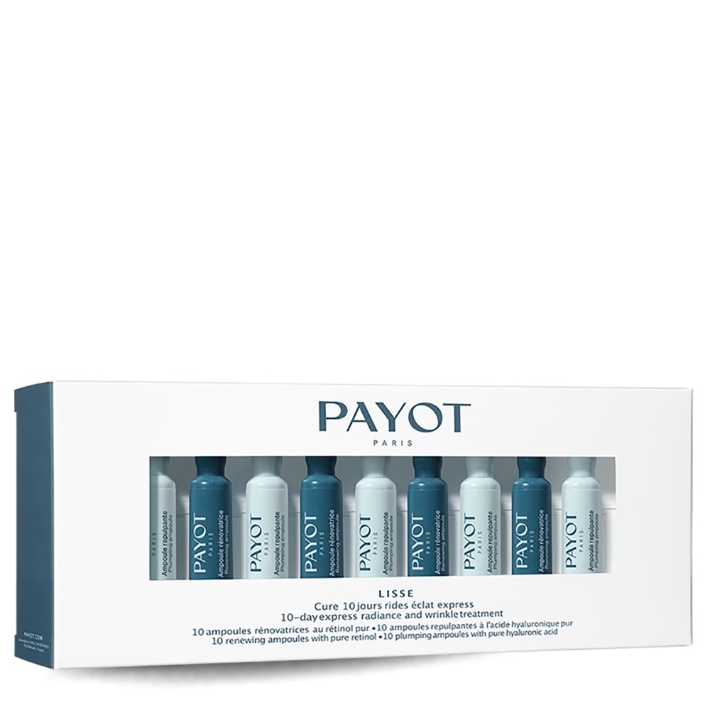 – 10 ampoules of pure Retinol to use in the evening to boost cell renewal and smooth the skin texture for deeply renewed skin.