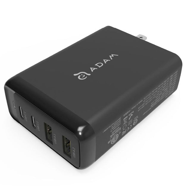 Equipped with 2 USB-C and 2 USB-A ports to charge up to 4 devices simultaneously perfectly crafted for every travel. Powered by the revolutionary GaN technology that packs 100W charging power in just a palm-sized adapter. Both USB-C ports comply with both Power Delivery (PD 3.0) and Quick Charge (QC 3.0) fast charge protocols: 5V ⎓ 3A 9V ⎓ 3A 12V ⎓ 3A 15V ⎓ 3A 20V ⎓ 5A while both USB-A ports comply with QC 3.0 fast charge protocol: 5V ⎓ 3A 9V ⎓ 2A 12V ⎓ 1.5A . Charge all your devices - iPhone iPad iPad Pro MacBook MacBook Air MacBook Pro 13" MacBook Pro 15" MacBook Pro 16" and more. Travel plugs for more than 150 countries are included (US UK EU AU standard). 100% safe charging: overcharging overheating and short circuit protection.