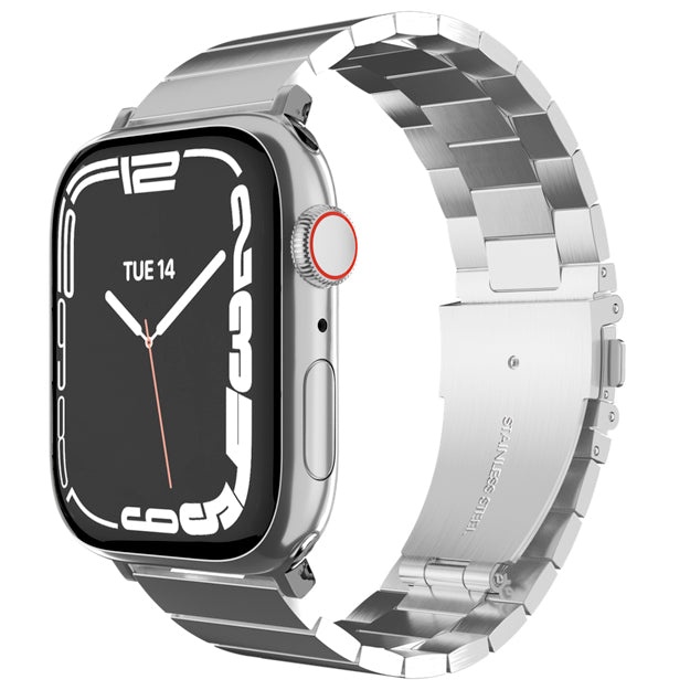 SwitchEasy Maestro Stainless Steel Watch Band For Apple Watch - 38/40/41mm and 42/44/45mm. Crafted from premium 304 stainless steel alloy in a sleek fine-brushed finish. The bracelets and clasps bring excellence and an elegant style. Quick-release push buttons for secure closure and perfect fit. ...Read more