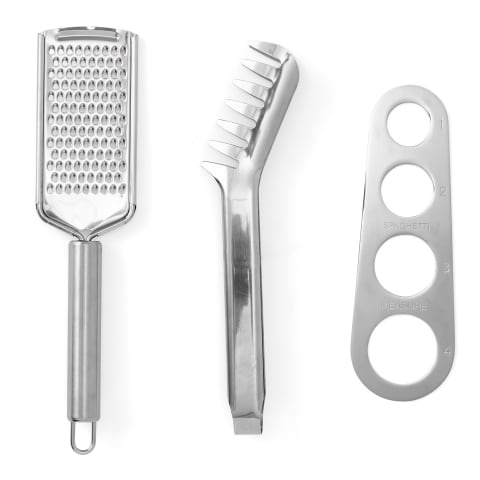 The Essentials Pasta Tools Set is your secret weapon for hosting pasta parties like a pro! Tucked inside an elegant book-like box these tools are as stylish as they are practical. Measure spaghetti like a maestro serve it up with finesse using the sleek serving tong and sprinkle on the cheese with the handy grater. A pasta lover's dream come true!