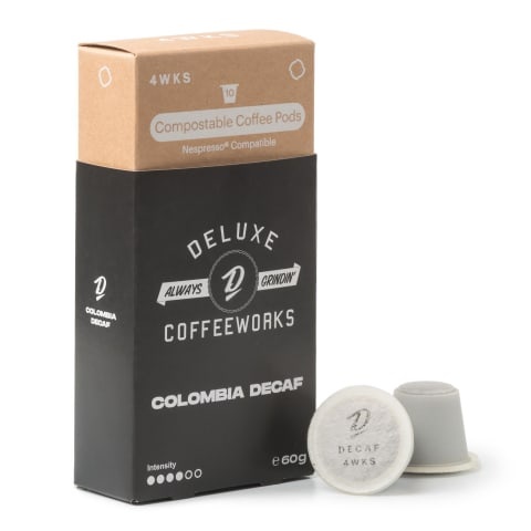 Ready to sip without the buzz? 4WKS Deluxe Coffee Works Decaf Compostable Coffee Pods bring the flavour without the caffeine jitters. Dive into a medium-roast marvel with chocolatey vibes and tangy naartjie notes. Whether you're a milk mixer or an espresso purist these pods have you covered. Packed in Woodstock Cape Town they're eco-friendly and taste-tastic. Take your coffee game to the chill zone!