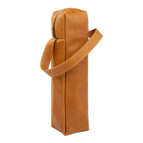 Insulated leather cooler fits 1 tall wine bottle