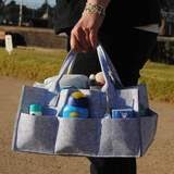 This Grey Felt Nappy Organiser is the best portable accessory to use from room to room. It is sure to keep your baby products perfectly organized and changing essentials within reach. Everything you need for baby is combined in one stylish as well as versatile diaper caddy organiser. Use on the changing table in the crib or on the go. This caddy is made from high quality felt fabric with a soft touch edge and includes removable inserts.
