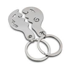 Two interlocking key rings forever caught in a romantic moment