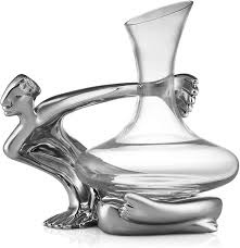 An elegant sculptural figure seated at a tantalising angle holds a glass decanter to serve your favourite vintage.Beautiful wedding gift.SUBJECT TO AVAILABILITY.