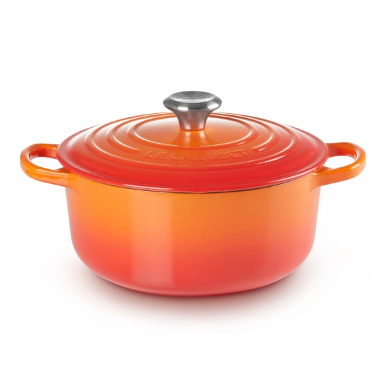The Le Creuset Signature 6.7L Round Cast Iron Casserole’s design yields moist tender results for slow-simmered soups and stews. Renowned for its excellent heat retention the casserole requires no seasoning and is suitable for stovetop and oven use. This versatile kitchen staple can be used for more than just comfort foods — experiment with no-knead bread or even use it to bake a cake!
