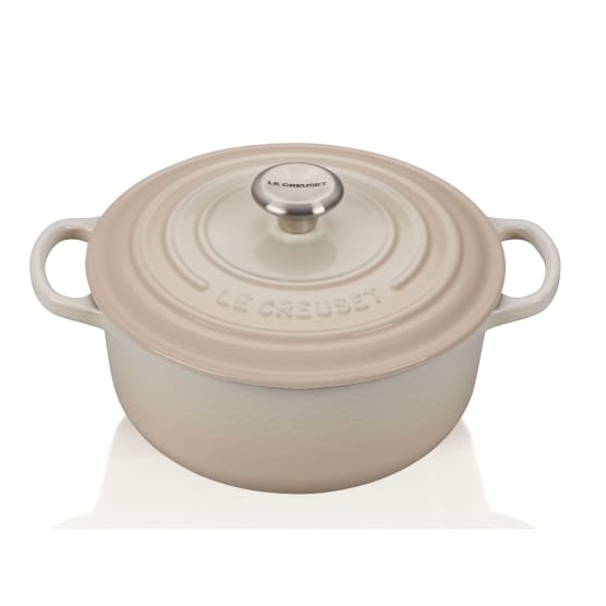 5.3 litre round cast iron casserole in Meringue