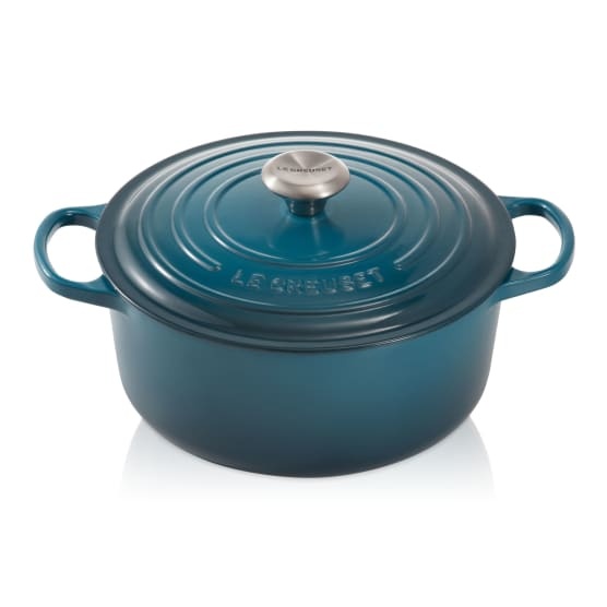 The Le Creuset Signature 5.3L Round Cast Iron Casserole's design yields moist tender results for slow-simmered soups and stews. Renowned for its excellent heat retention the casserole requires no seasoning and is suitable for stovetop and oven use. This versatile kitchen staple can be used for more than just comfort foods — experiment with no-knead bread or even use it to bake a cake!