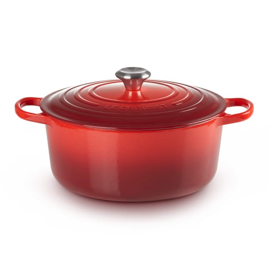 The Le Creuset Signature 5.3L Round Cast Iron Casserole's design yields moist tender results for slow-simmered soups and stews. Renowned for its excellent heat retention the casserole requires no seasoning and is suitable for stovetop and oven use. This versatile kitchen staple can be used for more than just comfort foods — experiment with no-knead bread or even use it to bake a cake!