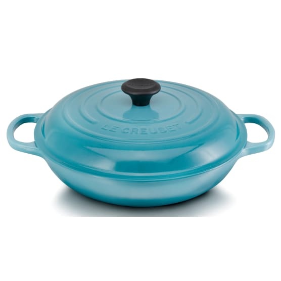 3.5 litre shallow casserole with lid in Caribbean Blue