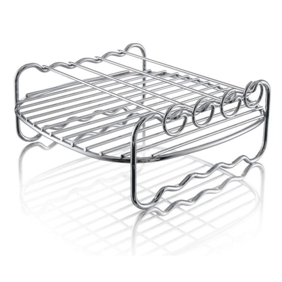 The double layer rack accessory maximises cooking space in your Philips Airfryer. Bake grill or fry tasty burgers chicken wings fish and more in an easy quick way. For more versatility use the included skewers to make vegetable or meat kebabs.
