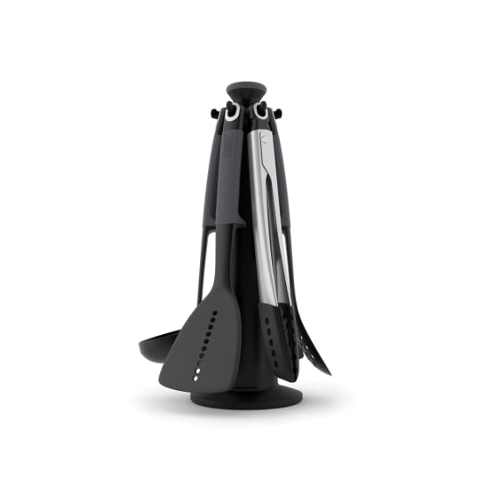 Containing six essential kitchen tools the Elevate Carousel Set comes with a carousel stand to store them stylishly on your kitchen worktop perfect for easy access when cooking. This stylish 6-piece set contains a range of essential kitchen utensils including a pair of lockable stainless steel tongs with heat-resistant silicone tips. Each tool features a tough nylon head that’s suitable for non-stick cookware and heat resistant up to 200ºC as well as silicone handles which are heat resistant up to 270°C.