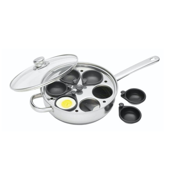 As with all Clearview products the poacher is made from high quality stainless steel with a mirror polished finish encapsulated base for even and efficient heat distribution toughened glass lid with steam vent and a riveted stainless steel handle. The extra deep pan can also be used as a sauté pan when the poacher cups are removed.