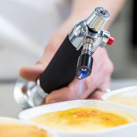 A classic cook's secret ingredient this refillable blowtorch is ideal for creating the finishing touch to a variety of dishes and desserts such as caramelising sugar toppings on créme brulee and tarte tatin browning meringues and crisping joints of meat.
