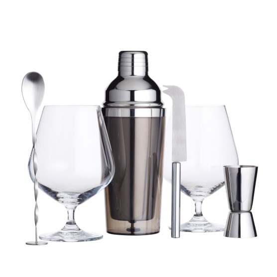 With this elegant gin gift set you'll be conjuring up drinks that you and your guests will love in your own home bar and just the way that everyone likes them. Whether you’re a beginner or a seasoned cocktail maker it couldn't be easier to mix pro standard drinks using the double ended cocktail bar measure pour your spirits into the durable shaker as per your favourite recipe. Shake or mix to blend the ingredients to your satisfaction then chop lime slices add to taste and serve in the roomy cocktail glasses provided in the kit. Cheers. It's also beautifully gift boxed making it a great present idea.