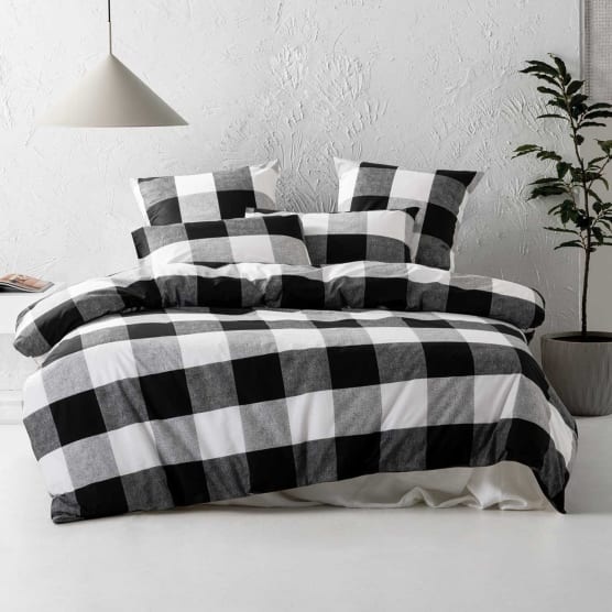 This Black and White Alec Duvet Cover Set is timeless with a sophisticated check for those that adore simplicity. It has the same front and reverse for added functionality and the black and white monochrome palette is both versatile and chic. Made from 100% cotton with button closures it is the quickest way to add comfort into any bedroom.Set includes two pillowcases