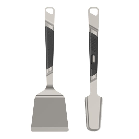 This premium 2 Piece Braai Tool Kit from Everdure by Heston Blumenthal is made from durable brushed stainless steel with specialised soft grip handles for comfortable use. This kit includes a Brushed Stainless Steel Solid Spatula and a pair of Brushed Stainless Steel Wide Tongs.