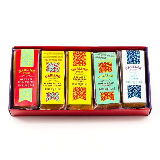 Darling Sweet came into existence when Frits van Ryneveld and Hentie van der Merwe met in September 2013 and decided to start a toffee factory in Darling; Hentie with his passion for art and food and Frits with his love for quality and design. They have created the most delectable old-fashioned handcrafted toffees seeing as one of its main ingredients is butter. The chefs have tracked down long-forgotten toffee recipes and experimented in their kitchen late into the night to perfect their confectionary.
