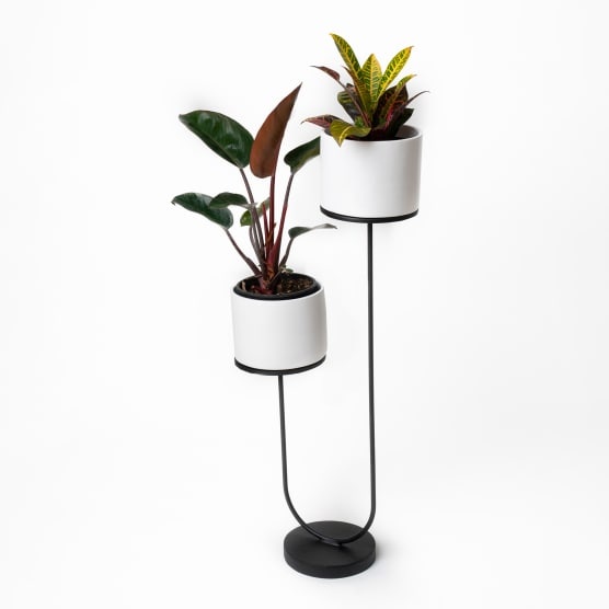 Make use of your vertical space with this beautiful display of physics at work! The visual illusion created by the two seemingly floating plant pots at different levels is eye-catching sturdy and functional. If you love plants this is bound to become your most prized decor piece.