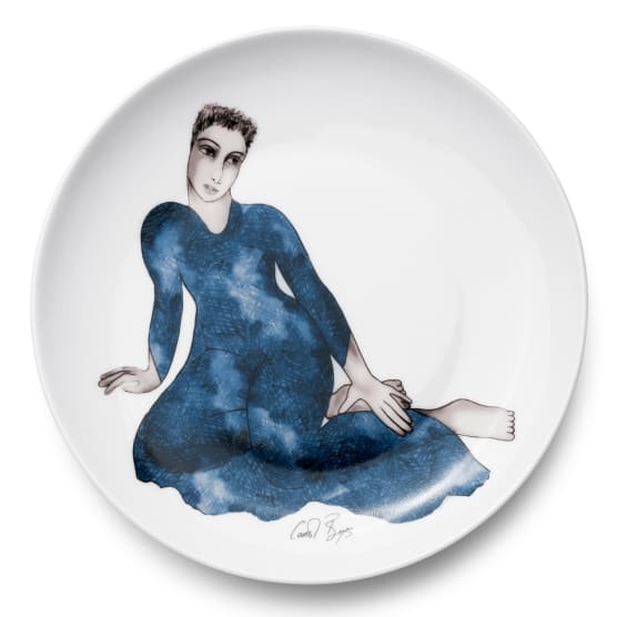 Lithe figures with delicate facial features are thrown into focus against a background of colour on these whimsical platters dinner plates and matching side plates crafted in Carrol Boyes' signature new bone china range of ceramics.