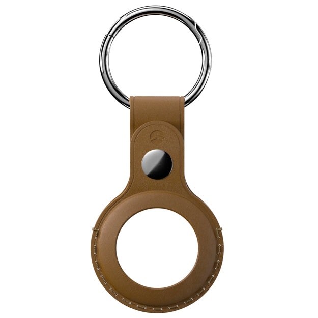 SwitchEasy Wrap Leather Keyring For AirTag Brown.