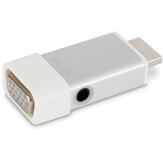 The adapter features a 3.5 mm headphone jack for clear audio output in presentations and videos. Inside the anodized aluminum housing is a full-featured converter that supports all standard output resolutions up to 1080p at 60Hz. Designed for portability the adapter does not require external power making it the ideal accessory for both professional and personal use.