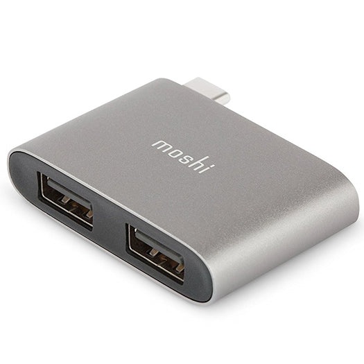 Connect any standard USB device such as an external hard drive keyboard mouse or printer using this adapter. Both ports provide for high-speed data transfer (at up to 5 Gbps). The adapter's anodized aluminum housing not only minimizes EM interference but also complements your MacBook perfectly.