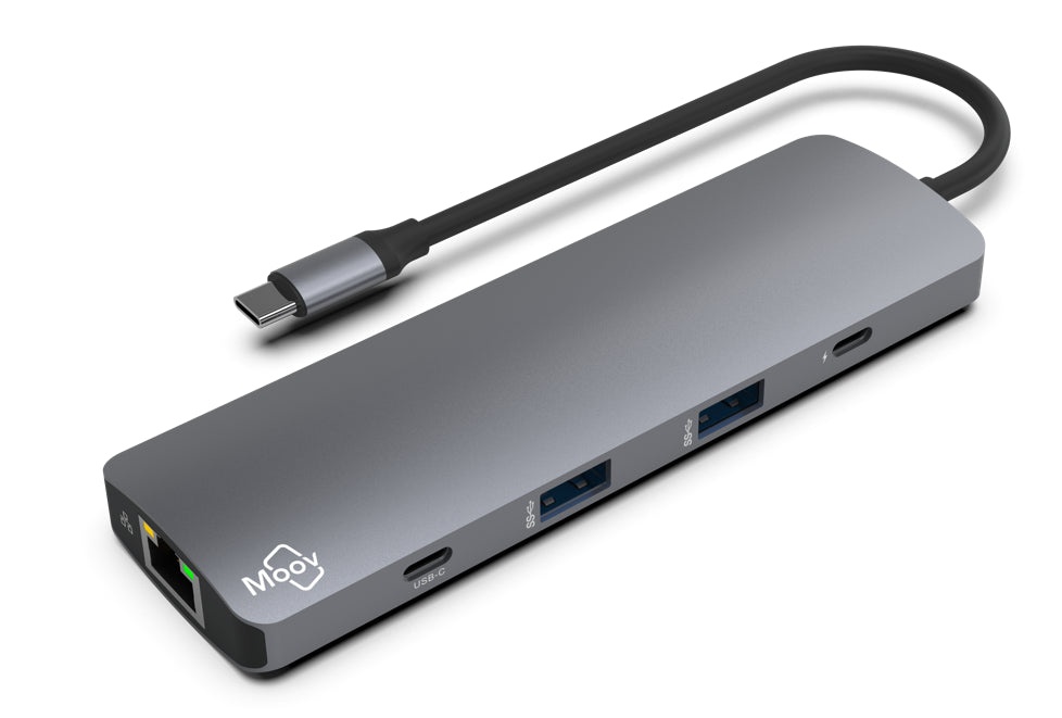 This lightweight design is ultra compact and portable for connection on the go. The multiport hub's High Speed Power Delivery provides pass-through charging at a rate of up to 100W. Subject to availability