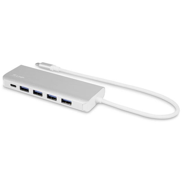 TA USB-C hub that combines the legacy USB-A (USB 3.0) as well as the new USB-C (5 Gbps) ports in a sleak aluminum housing. 4 USB-A and 3 USB-C ports with data transfer speeds of up to 5 Gbps are at your disposal