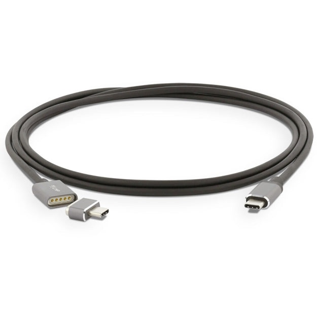The magnetic safety mechanism disconnects safely if someone trips over the power cord or pulls sharply on the laptop. The power cord can be attached magnetically on both sides to the USB-C connector. It supports USB-C Power Delivery (USB PD Power Rules) with up to 100 W (up to 20 V / 3.0 – 5.0 A) charging and can be used with USB-C power adapters such as Apple USB-C Power Adapter 29W 61/67W or 87/96/140W. The Magnetic Safety charging cable does not transmit data or a video signal (DP Altmode).