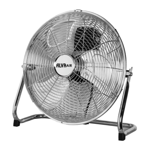Beat the heat and bring on the cool with the Chrome Floor Fan from Alva Air. With a classic chrome-plated finish and an added handle this fan can easily be moved around and placed where the cool air is needed. It's equipped with 3 durable aluminium blades and the tilt can be adjusted to fit your needs. Plus it has convenient cable wrap storage.