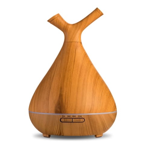 This portable wood effect Aroma Diffuser with LED lights uses ultrasonic waves to instantly diffuse water and essential oil into the air to produce a fragrant mist. Humidify your living space to prevent dry stuffy air and fill your home with lovely fragrance.