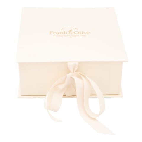 This beautiful book-style Luxury Gift Box is filled with the famous Frank & Olive candy treat box a mini box of tutti frutti bonbons a packet of fluffy marshmallows and scrumptious vanilla tea biscuits — perfect for an indulgent treat or a thoughtful gift for that special someone!