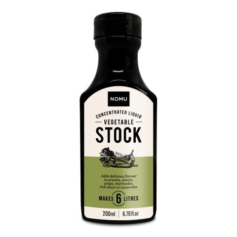 This concentrated liquid stock from Nomu is made from natural ingredients — free from artificial flavours enhancers colouring agents and preservatives. In cooking everything has a name even those crispy brown bits at the bottom of the pan after you sear steak or roast a chicken. Known as the fond those brown bits make a fantastic gravy to go over roast meats and add a huge amount of flavour to soups and stews. And that's what this stock does.