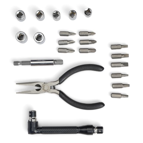 19-piece mini bit and socket set with needle nose pliers