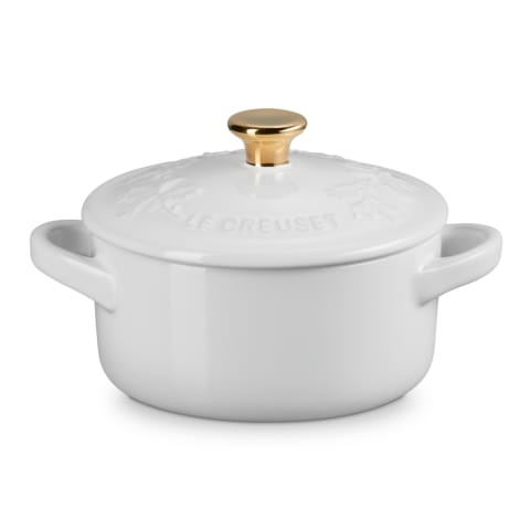 The Holly Collection Mini Cocotte features an elegantly scrolled and embossed holly leaf design that will spread good cheer and joyful style year after year. It's perfect for sharing holiday appetisers dips small bites desserts and more — it's also versatile for prepping and storing ingredients or as an elegant and cheerful decorative accent in the kitchen throughout the holiday season.