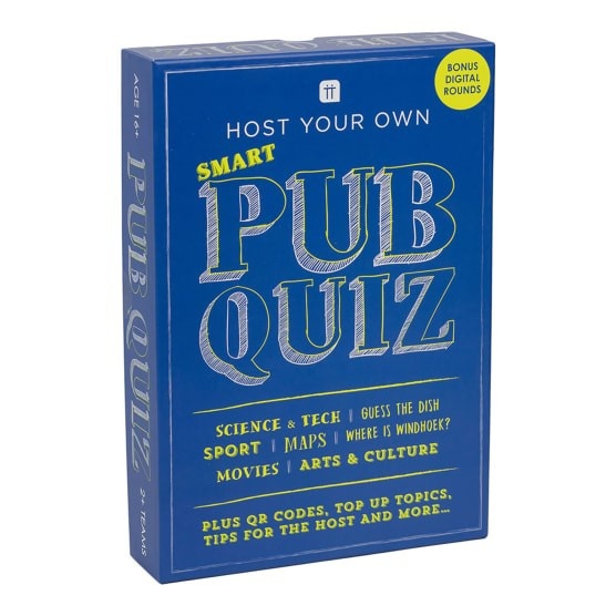 Bring the fun of a classic pub quiz home! With 10 unique rounds — from music to dingbats — this Host Your Own Pub Quiz Game is perfect for teams or solo players making any dinner party holiday or casual get-together a lively memorable event.