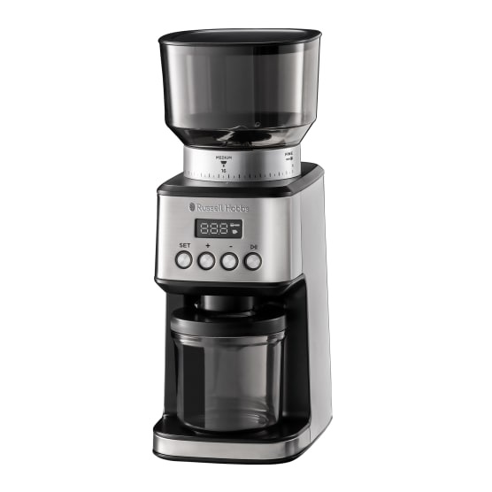 Coffee fanatics can grind their coffee beans evenly and with superior consistency with the Conical Burr Grinder. It features 31 different grind settings from a coarse French press to a Turkish fine grind and with the adjustable cup capacity setting you can grind beans for up to 10 cups of coffee.