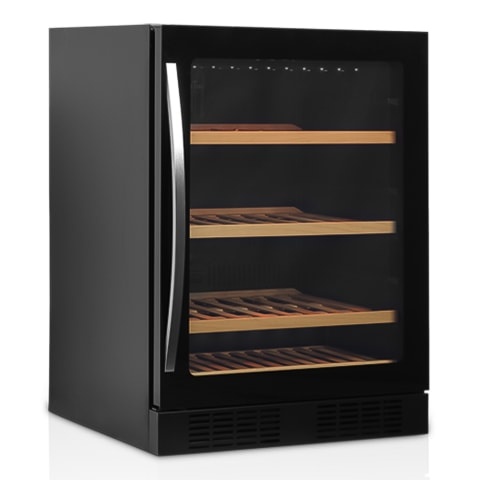 This stylish space saving Refridgerated 45 Bottlle Wine Display and Storage Cabinet is perfect for the wine connoisseur who wants to be able to store and serve their wine collection at the perfect temperature. This single temperature cooler's internal temperature can be adjusted between 5 - 18°C to allow the perfect storage temerpature for white red and sparkling wine. The cabinet has 4 wooden drawing shelves as well as an internal LED light that will enhance any kitchen or bar area.