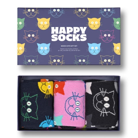 xmja08-0150_41-46Happy Socks Mixed Cat Gift Set Pack of 3