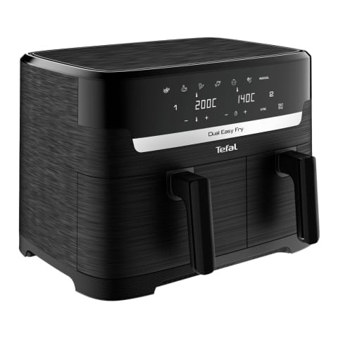 The Easy Fry Dual Airfryer features a double-drawer design allowing you to cook two dishes at once with perfectly timed results. With a total 8.3L capacity it’s perfect for family meals. Enjoy crispy golden food with up to 99% less fat faster cooking and easy cleanup.