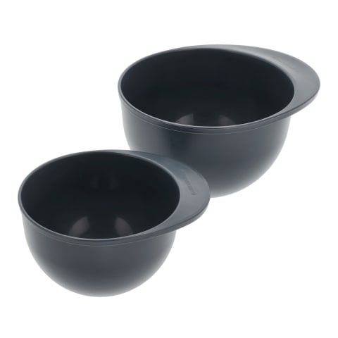 Mix whisk and serve with ease. This set of two durable mixing bowls has a nesting design for simple storage and wide rims for a steady grip — ready for all your favourite recipes!